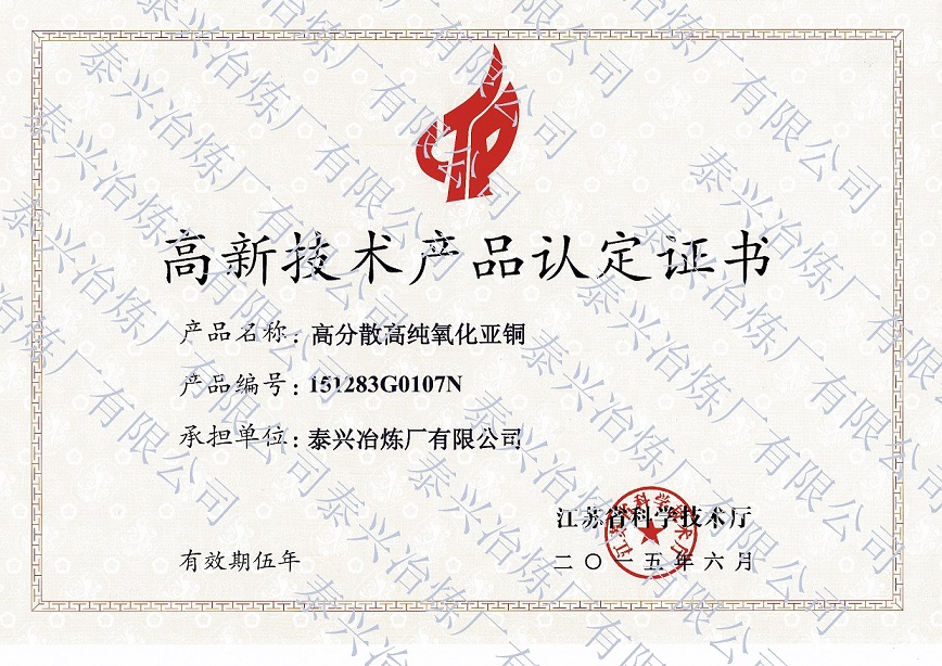 氧化亞銅生產(chǎn)歷史悠久,技術(shù)和規(guī)模在全 國均處于領(lǐng)先地位